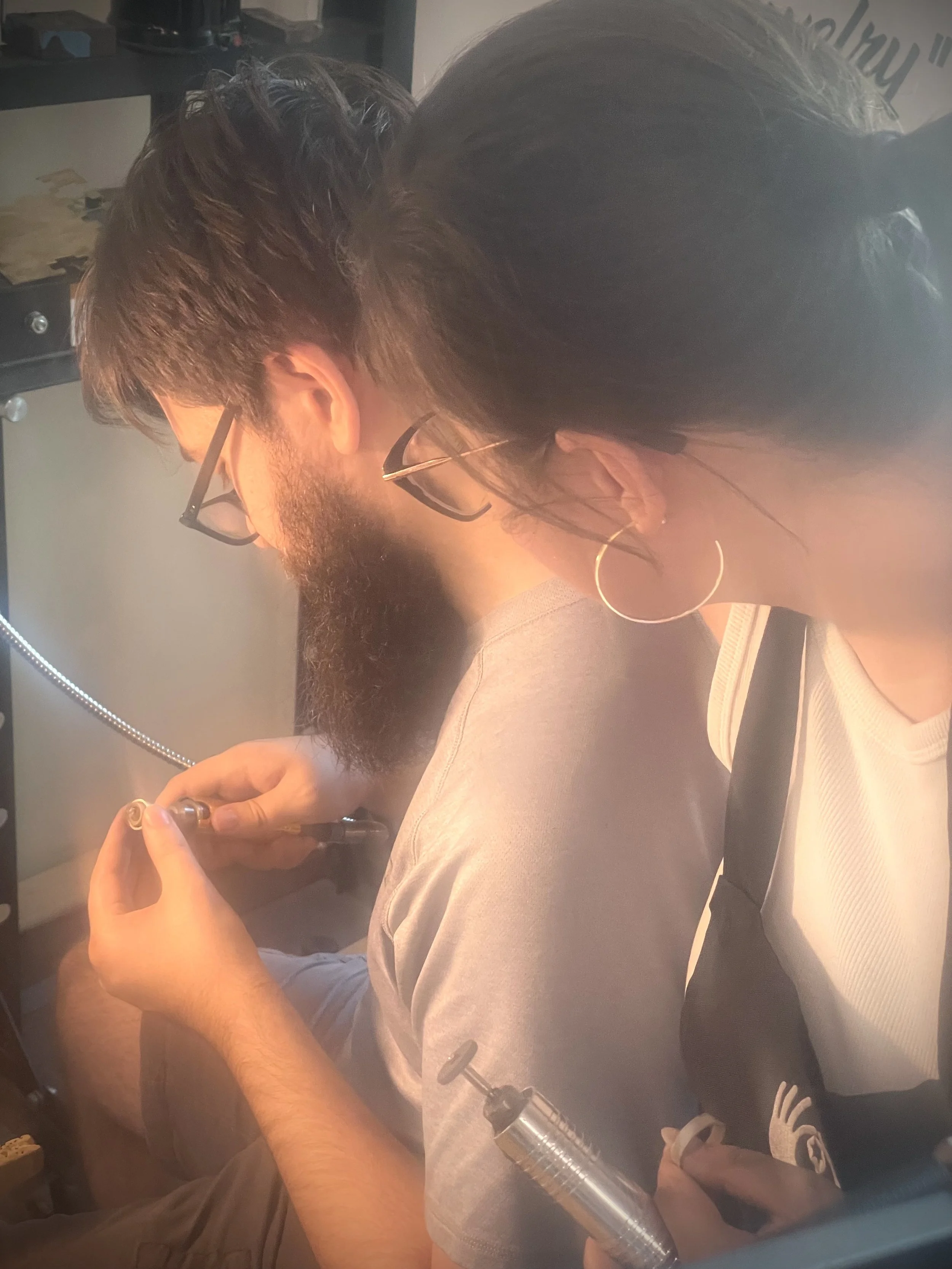 You’ll work at a professional jeweler’s bench, using real tools and traditional metalsmithing techniques. I guide you step-by-step so your rings are not only personal, but structurally sound and beautifully finished.
