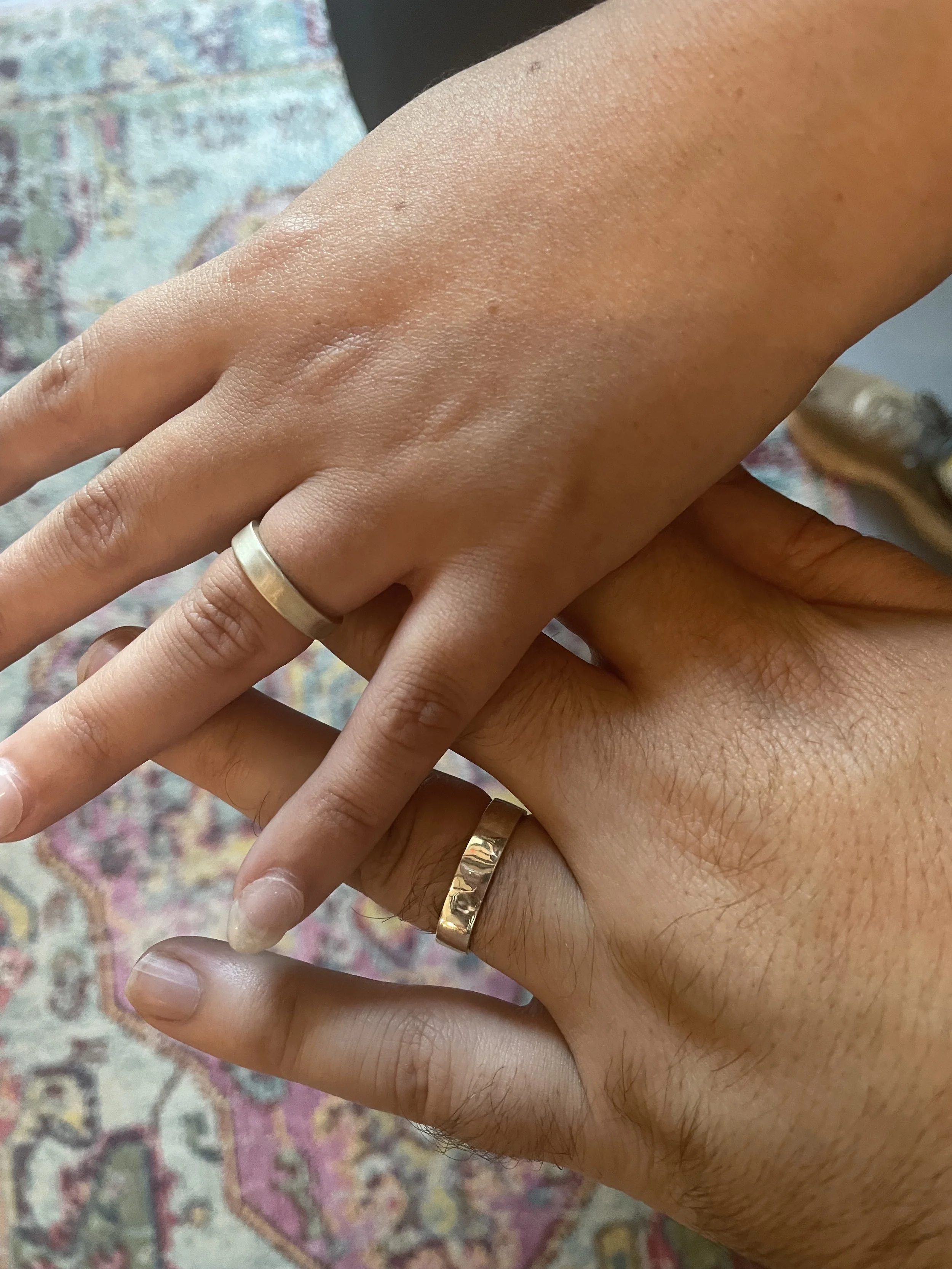 In our Peachtree City jewelry studio, couples create their own wedding bands in a private, guided session — shaping, soldering, and finishing the rings they’ll wear every day.