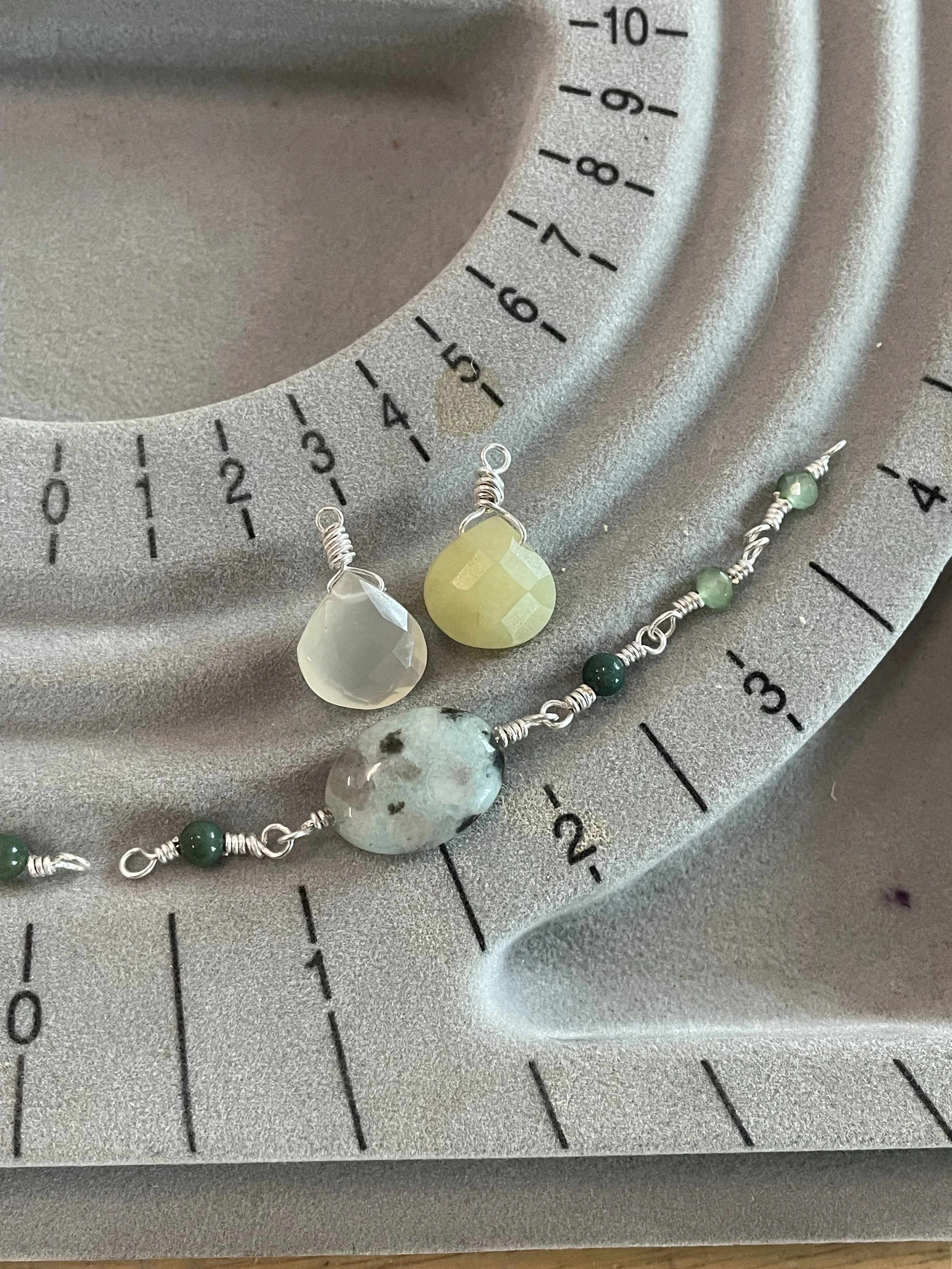 In this beginner-friendly class, students learn the foundational wrap — often called the “Mother Wrap” — then apply it to creating links, drops, findings, and stone cage wraps.
